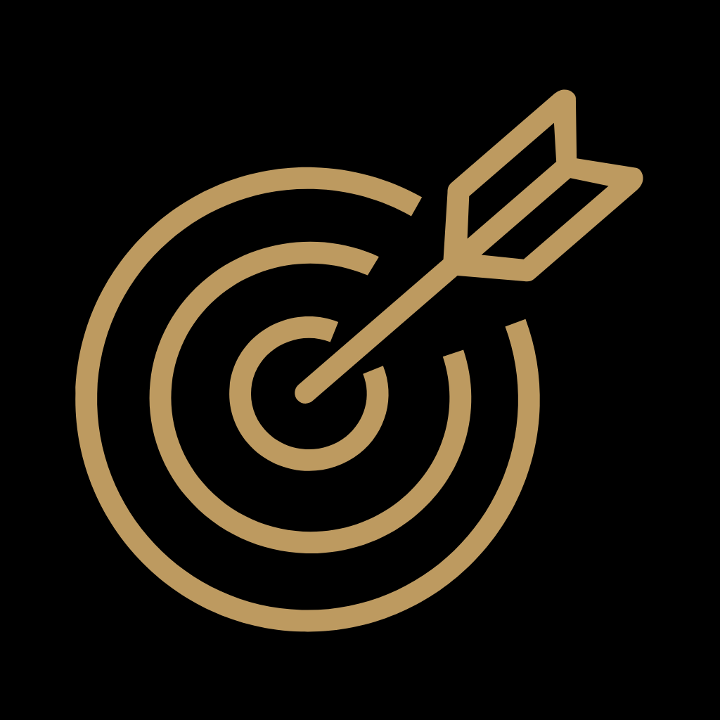 • A black background with a gold check mark inside a circle, surrounded by circular arrows.